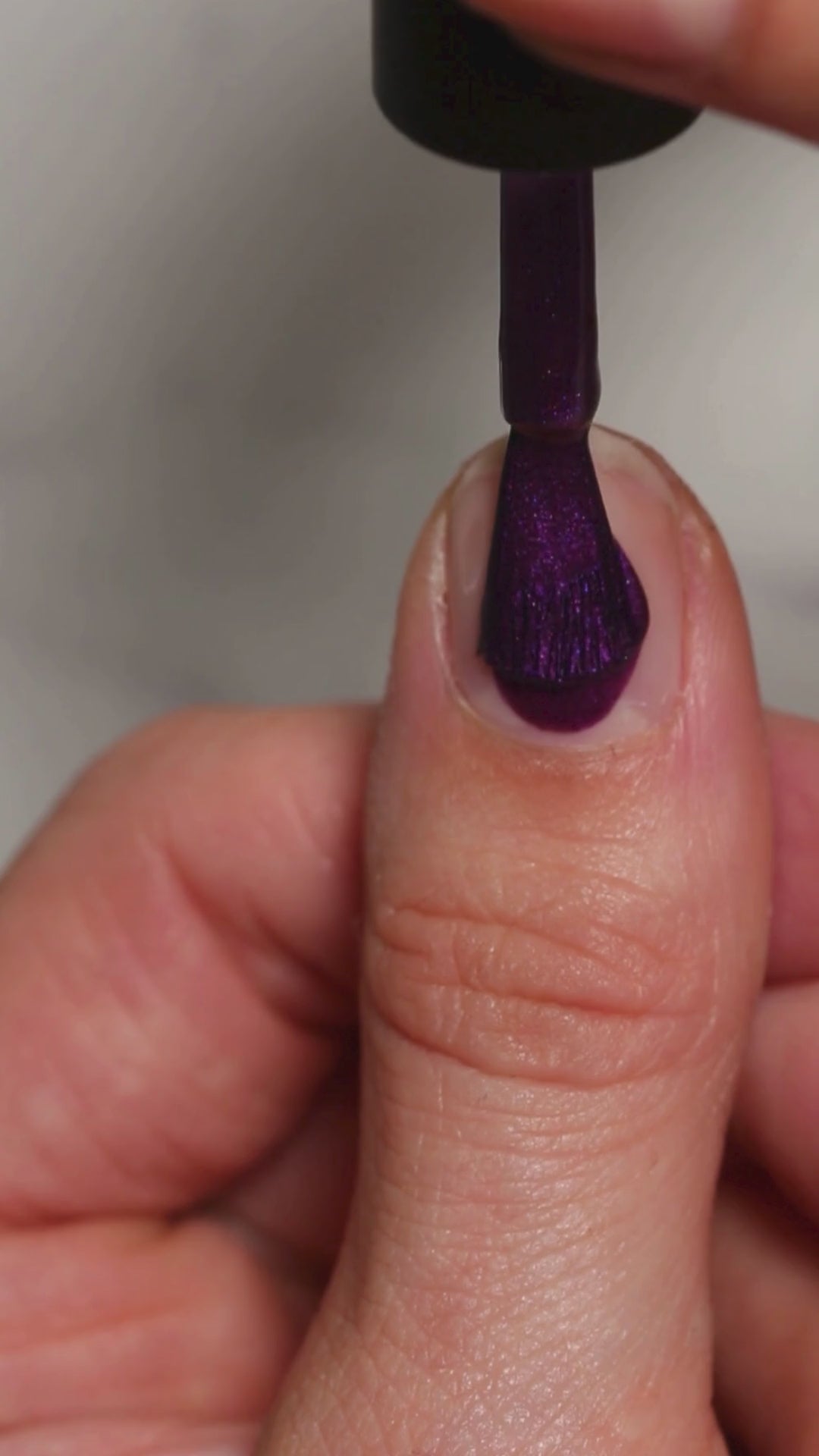 - Apply 1 thin coat of your favorite color to all 10 nails