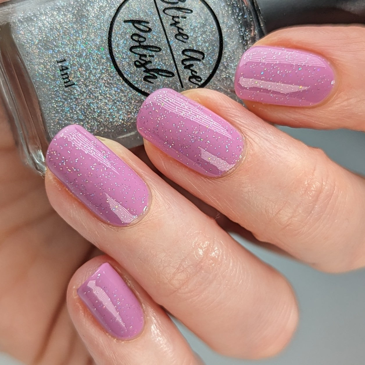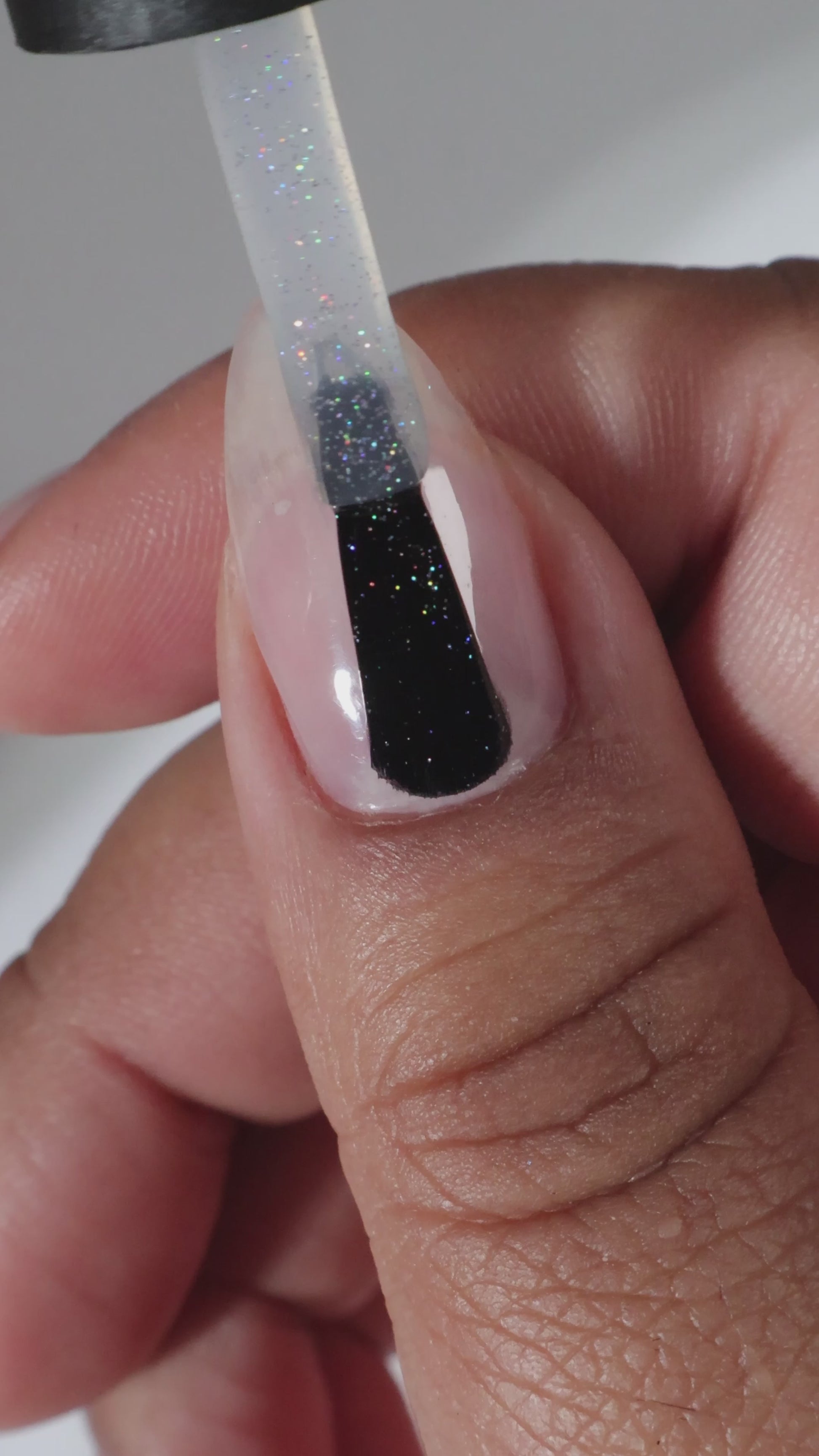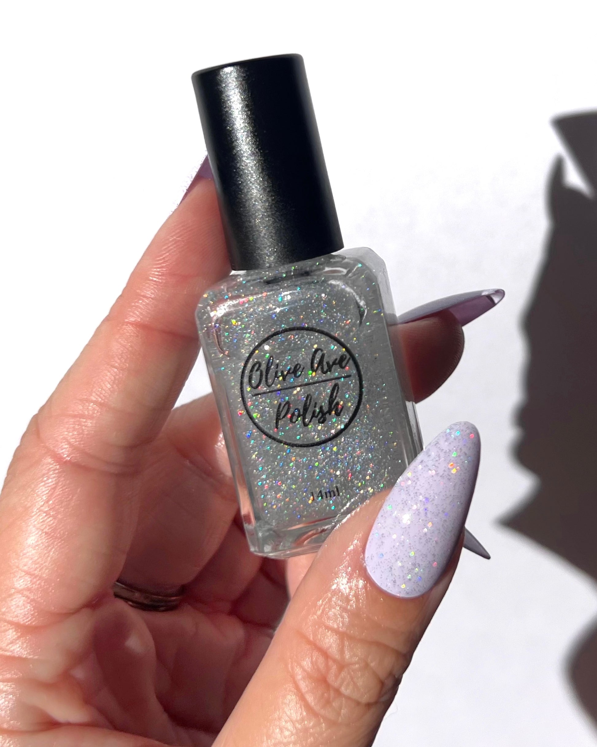 A scattered holographic topper that adds a pop of sparkle to any color. Like a burst of excitement on a cloudy day, this shade is your go-to for adding extra joy (and glitter) to your week.