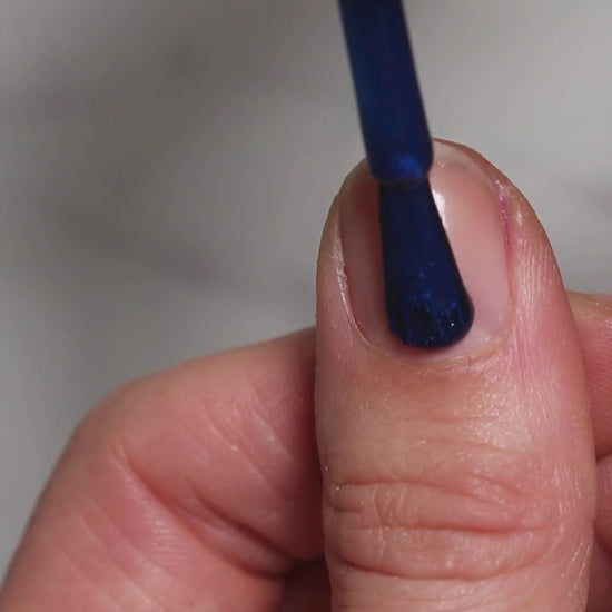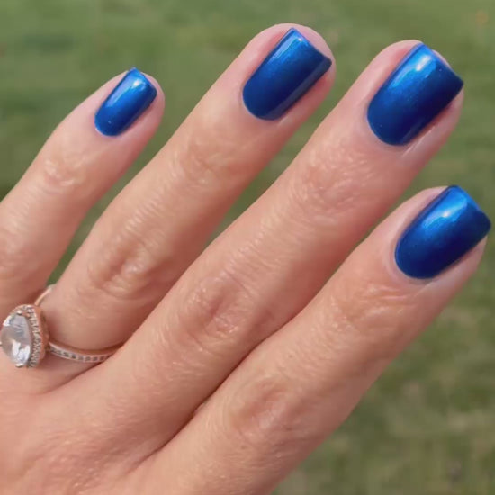 A royal blue ribbon metallic that is both calm and festive. Its bold metallic finish brings party energy, while the calming blue invites you to slow down and take it all in. Wear it as a reminder to make space for calm alongside moments of celebration.
