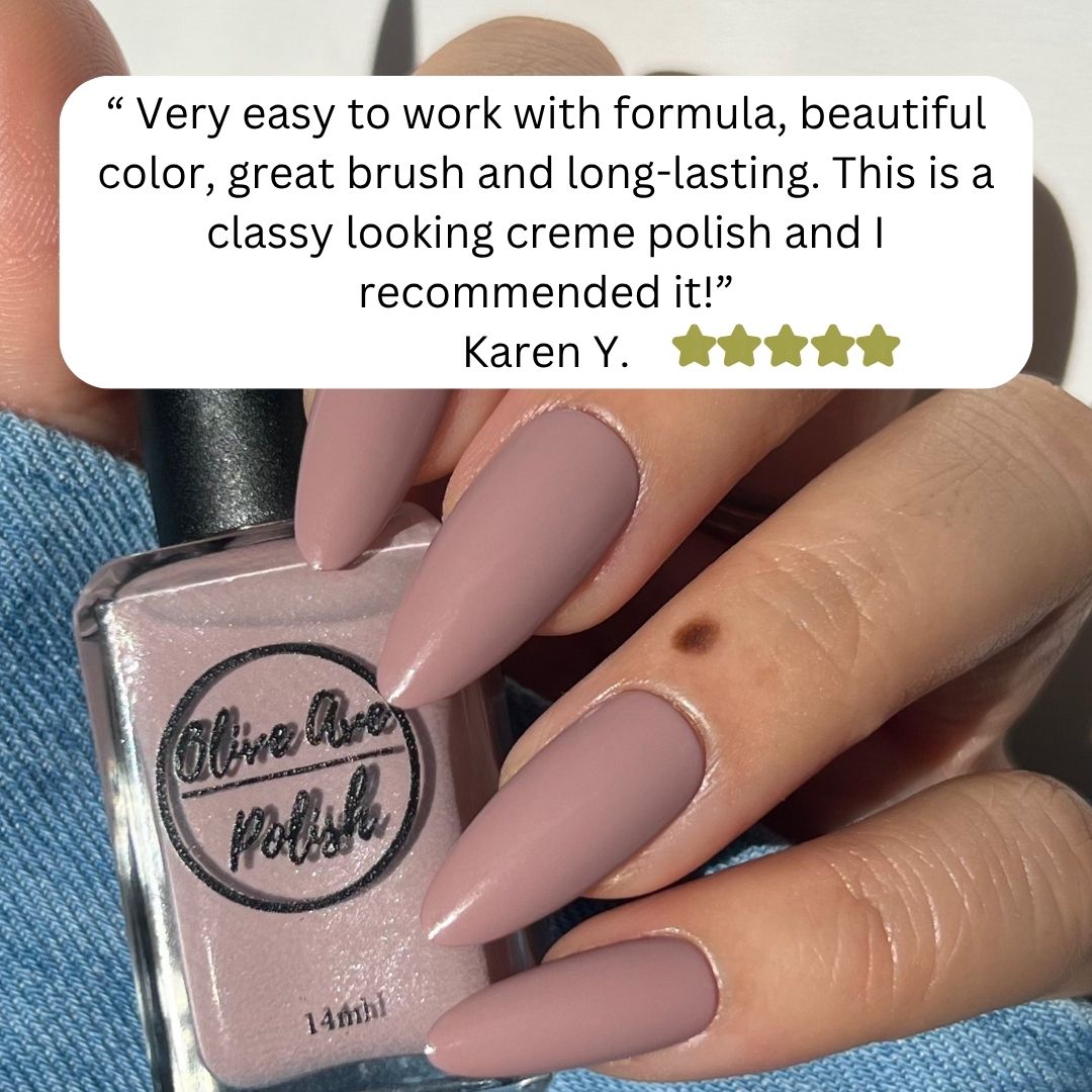 I stopped painting my nails because I thought it was impossible to find a polish that met my strict standards for both performance and safety. I tried over a thousand nail polishes and learned exactly what makes a manicure effortless and joyful. I personally curate every color to ensure it meets my high standards and gives you the 5-star mani experience Olive Ave Polish has come to be known for.