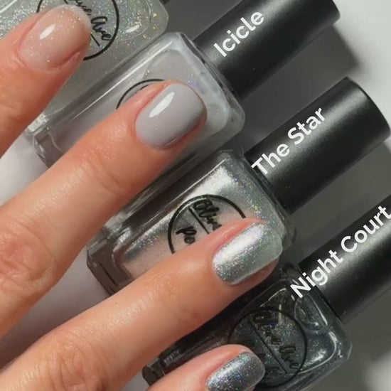 A luminous silver foil metallic that gleams like a mirror, offering your light back to you. Inspired by The Star, this shade reflects the moment you recognize who you are at your core. Wear it as a reminder that to know yourself is a kind of magic.